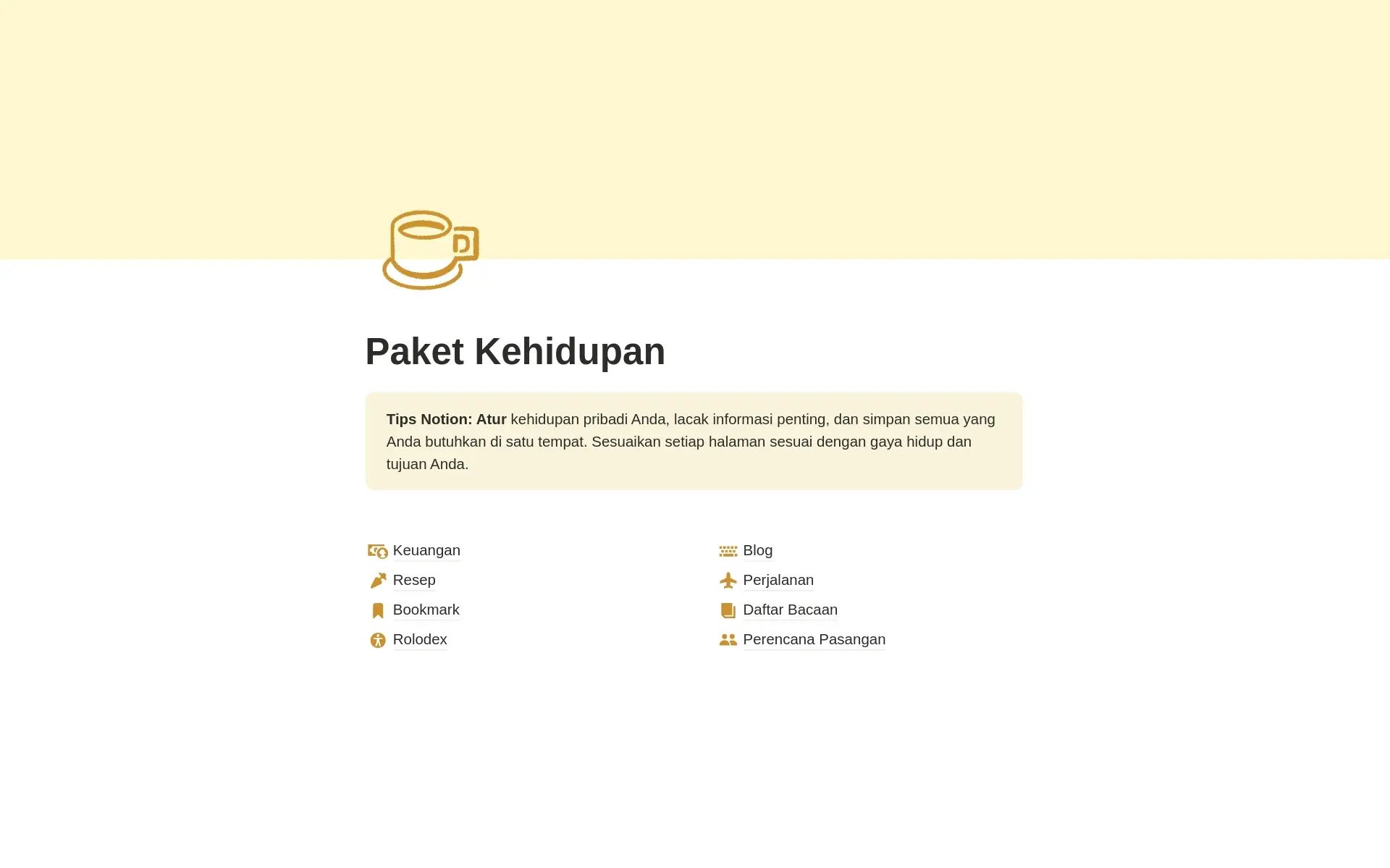 Temukan berbagai cara baru untuk menggunakan Notion di pekerjaan dan kehidupan Anda.Pekerjaan templat