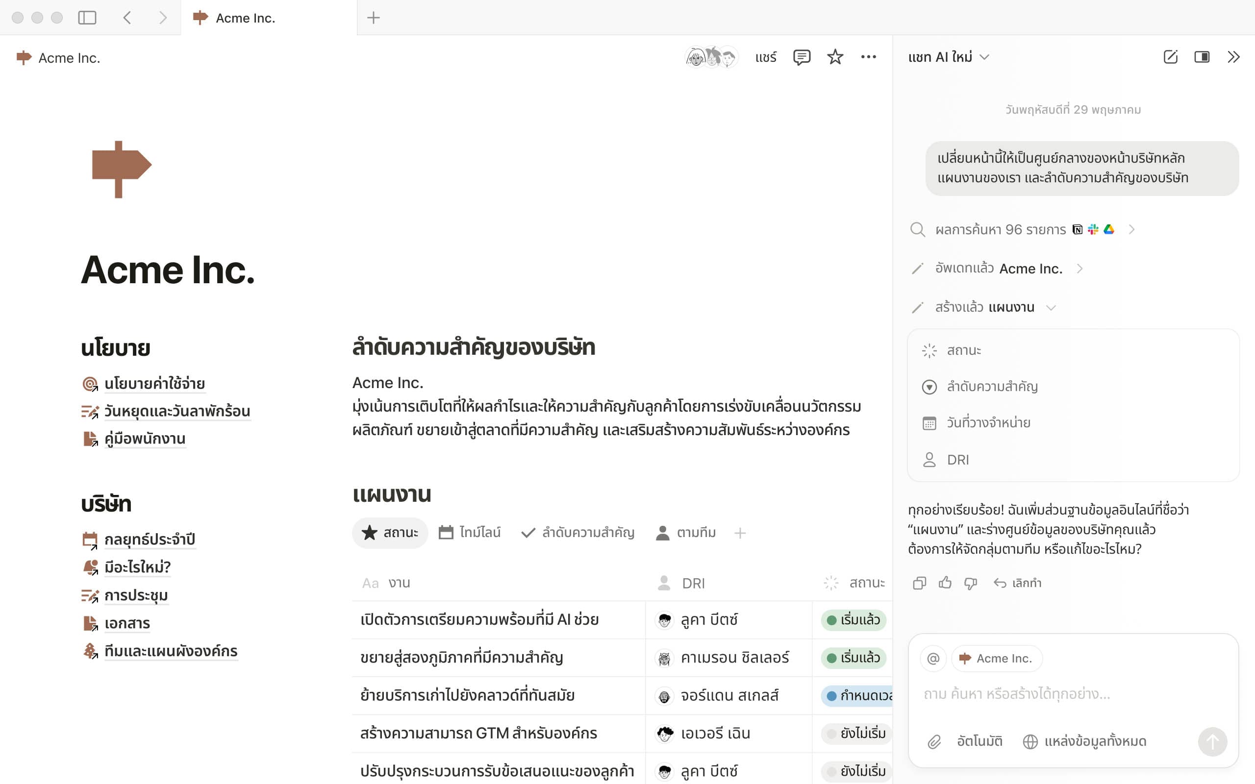 ภาพตัวอย่างแอพ Notion บนเดสก์ท็อป